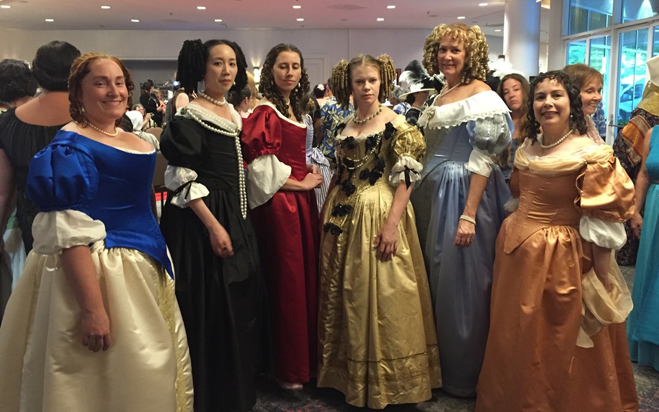 Reproduction 1660s peach Cavalier style dress worn to Costume College 2017.