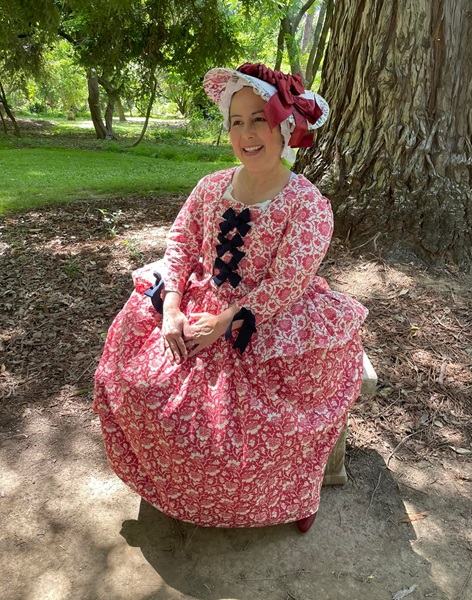 Made a short version of sack back/a la Francaise as a mock up. Worn to a picnic in 2022 and Costume College 2022.