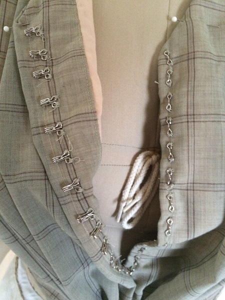 lining has front smocking/pleating to create a fan front. Hook & eyes up the front,