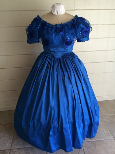 1850s Reproduction Blue Victorian Ballgown commission was made to be worn