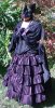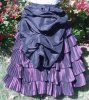 | SkirtPurple polyester taffeta, pleated onto black polyester taffeta circle skirt. Slightly gathered into black waistband, 3 hook and eye back closure, hidden side pockets. |