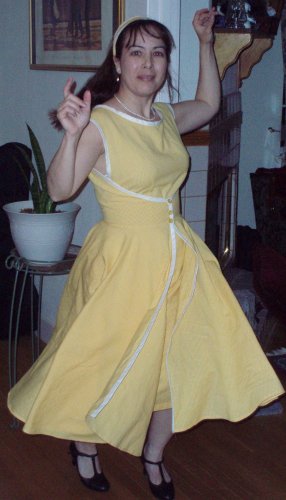 made buttonholes instead of snap front. Torso is about 1" too long on me; dress