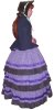 three gathered flounces, purple satin trim, dark sage green taffeta trim, and
