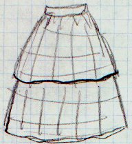 Drawing 2 was selected. Burgandy plaid skirt with two layers, hidden side