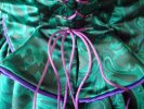Green lace on overlay with grossgrain hem on bottom portion of skirt