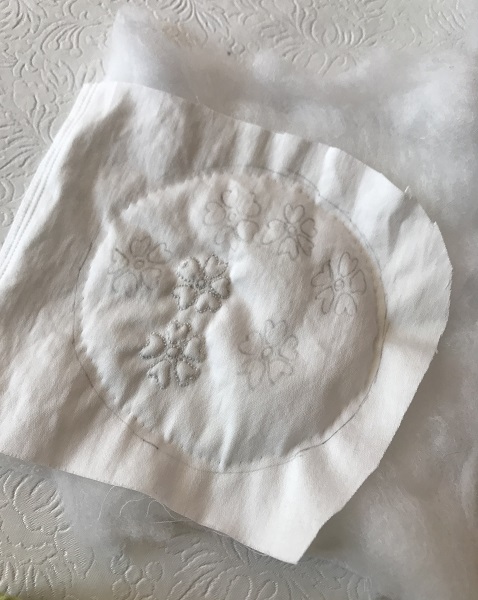 - Quilt the flowers. I used heavy thread and did a very small backstitch to mimic the original. I started