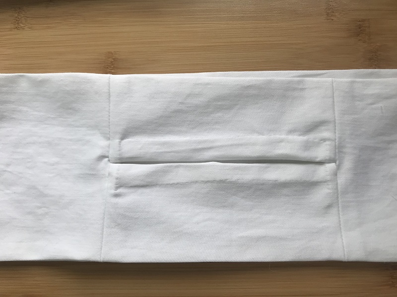 - Fold or iron the the top of the seam twice to make a narrow hem (near the middle mark).