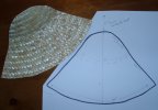 Cut out piece from bonnet. Leave approx. 2" of crown (bottom/inside of hat)